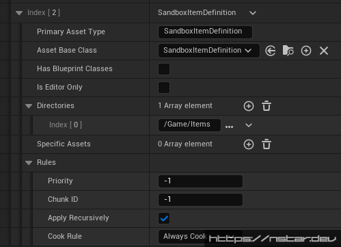 UAssetManager and “primary assets” are Epic’s built-in system for managing and asynchronously loading assets that both the editor and shipped games can take advantage of. Levels are a default type of primary asset included with the engine and support. This section will teach you how to add your own with the pre-made UPrimaryDataAsset base class and load them asynchronously with bundles using the Asset Manager. My example project is a Third-Person Template project named Sandbox but you should use the name of your project.