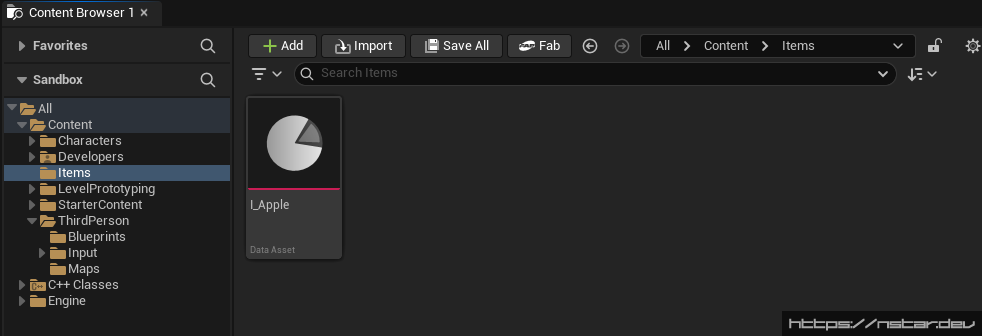 In /Game/Items, right click and navigate to Miscellaneous > Data Asset